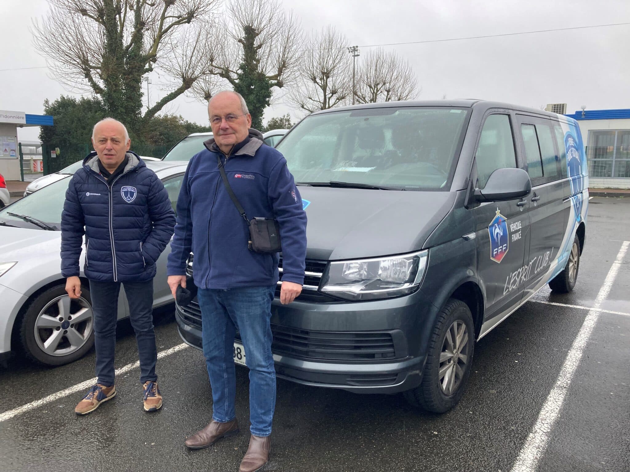 Nous sommes mardi, une journée pluvieuse de février. Il est 17h30, et sur le parking du stade de l’Idonnière, les deux minibus aux couleurs du Vendée Poiré Football attendent. Ce soir, c’est Philippe GUIBERT et Joël PERROCHEAU qui prennent le volant. La tournée est planifiée par Thimotée FERAND, qui a communiqué dans la journée avec les jeunes joueurs pour organiser les récupérations.